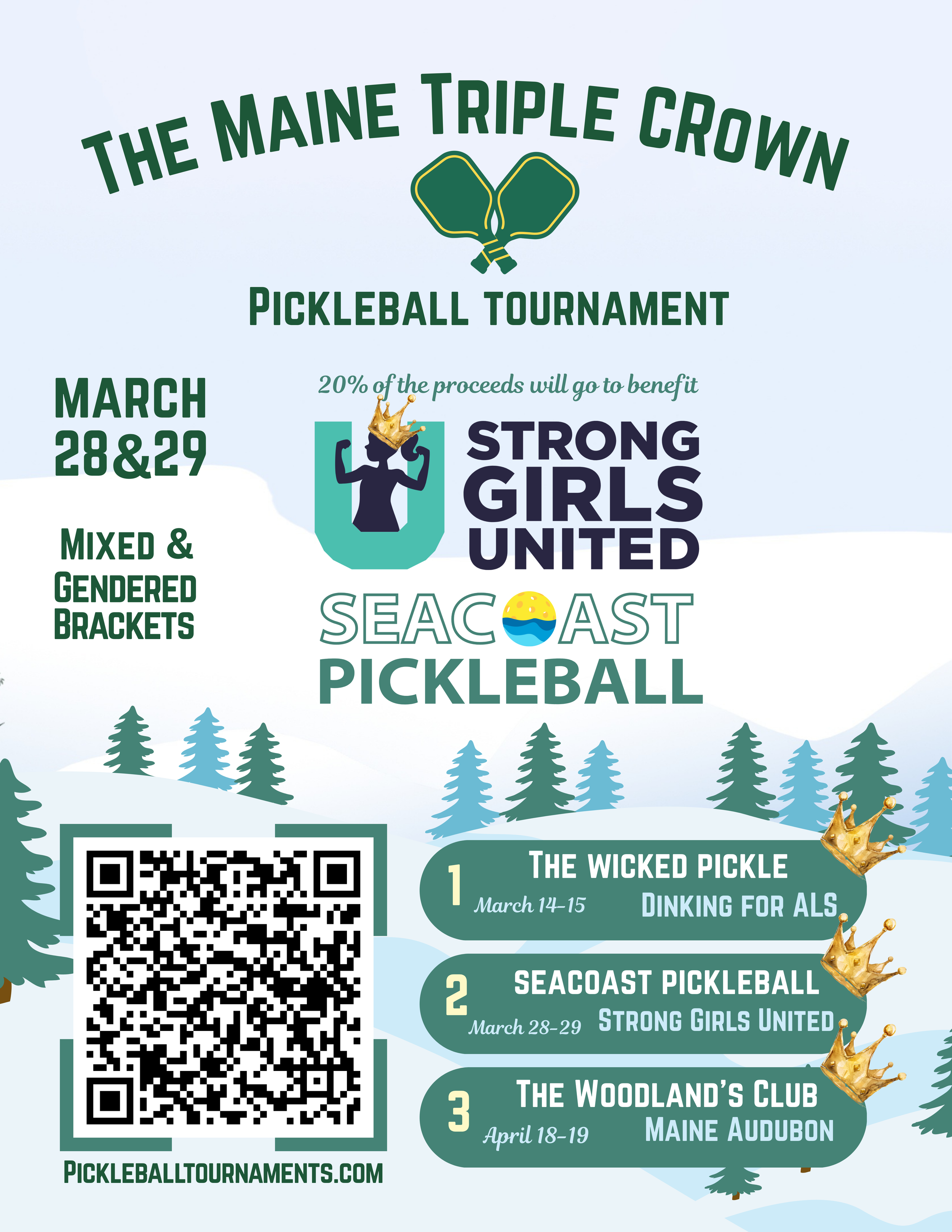 Join us for an exciting weekend of pickleball action as we partner with two of Southern Maine’s premier pickleball clubs for this one-of-a-kind three event tournament series!